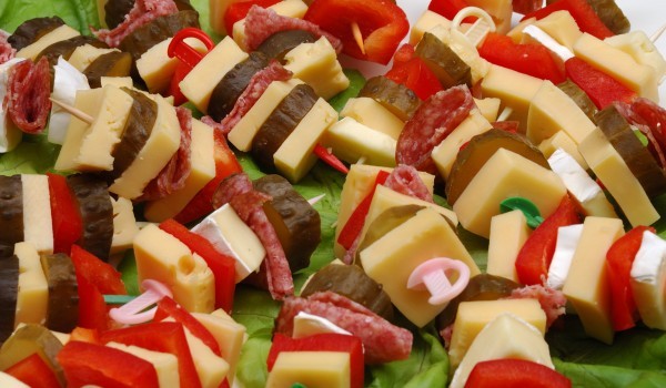 Нарежете кашкавала, моцарелата и червените чушки на средно големи, равни кубчета. Киселите краставички на недебели кръгчета. Саламът се реже на тънки филии, които се прегъват на две при реденето на ха...