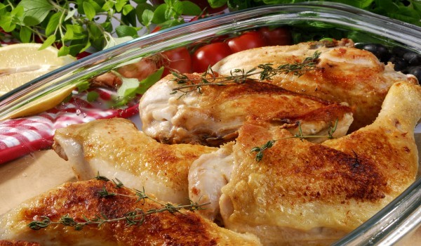 Пуйката се ръси с черен пипер и сол , пече се 20 мин. с олиото в силна фурна и 40 мин съвсем тихо. Добавя се бялото вино, китка подправки, скилидки чесън, глава лук, карамфил. Обелват се портокали...