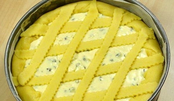 Разбъркайте заедно киселото мляко със содата, добавете разтопеното масло и натрошеното сирене. Сипете пресятото брашно и добре объркайте, докато стане гъсто тесто. Сипете тестото в подготвена намазн...