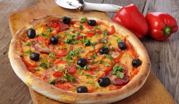 Тестото се разстила в тавата, върху него се намазва кетчуп. Нарязаните продукти се подреждат и най-отгоре се настъргва сирене и се поръсва с чубрица. Пече се в загрята фурна.