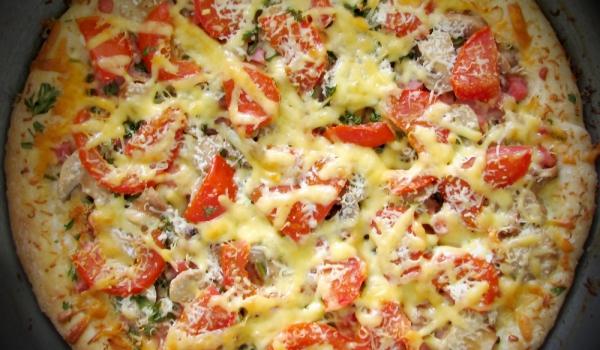 Тестото за пица се подготвя и се оставя да втасва встрани. Фурната предварително се загрява до 220 градуса. След като втаса тестото, се замесва с 1 с.л. зехтин. Тестото се разточва на кора с дебелина...