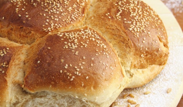 Разтворете маята във водата със захарта и щом шупне добавете мазнината и солта. Добавете гриса и брашното на части, като омесете меко и еластично тесто, което не трябва да лепне. Сложете тестото да в...