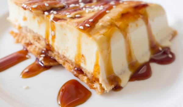 Надробените бисквити се смесват с ореховите ядки и разтопеното масло. Сместа се разпределя по дъното на подходяща форма, пече се около 10 минути на 175 градуса и се оставя да изстине. Смесват се разб...