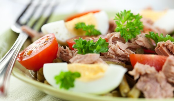 Зелената салата се нарязва и се разстила на дъното на голяма плоска чиния. В средата се поставя рибата и се залива със сместа, направена от майонезата, киселото мляко и ситно нарязаните маслини. Най...