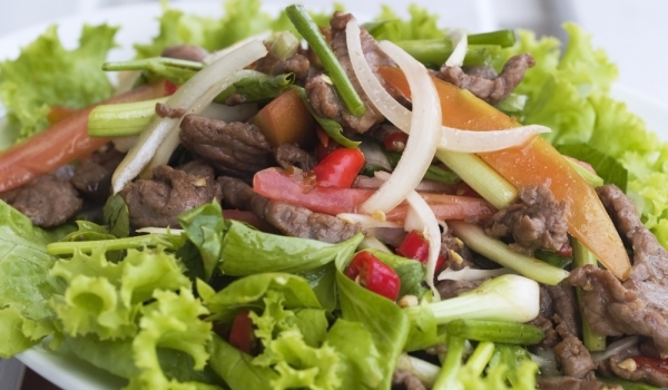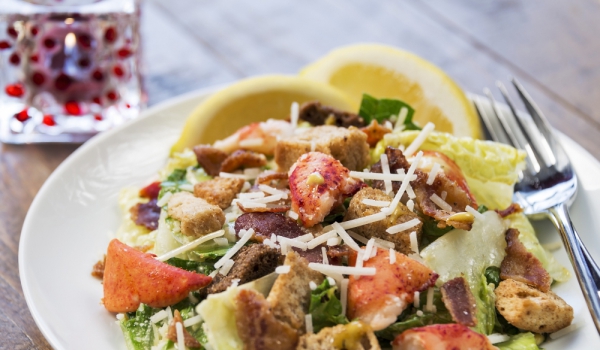 Месото от омара се запържва леко. Грахът се сварява. Салатата се накъсва с ръце. Смесват се месото от омара, грахът, салатата, доматчетата, поръсват се с настърган пармезан и с крутони. Приготвя се...