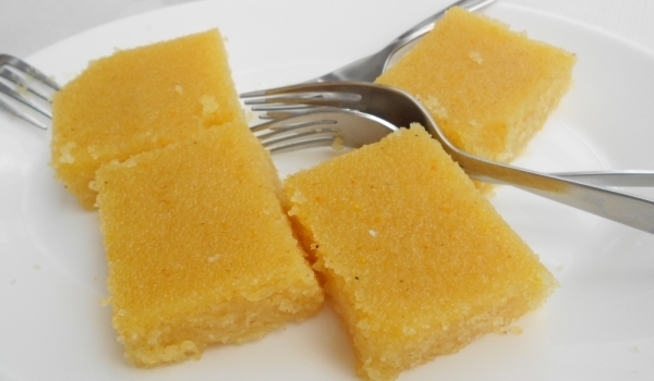 Кипнете портокаловия сок с кардамона и канелата и оставете да изстине с тях, след което ги отделете. В купа смесете брашното, царевичният грис, бакпулвера, сухото мляко, захарта и разбъркайте заедно...