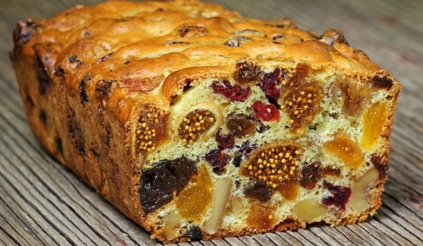 Напръскайте сушените плодове с ромовата есенция и ги оставете да престоят, докато разбивате кекса. Ако има по-големи парчета плодчета, като например смокини и фурми, ги нарежете на по-дребно. Разбийт...