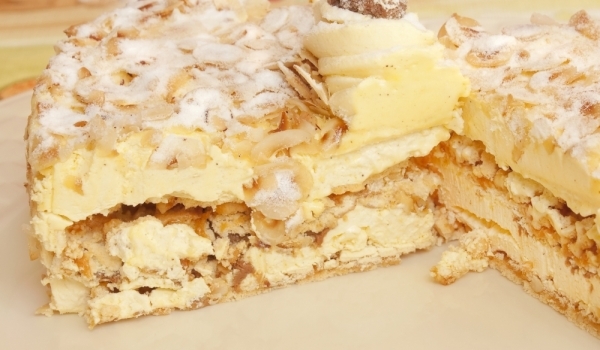 Приготвяне на блата: Разбийте белтъците на пяна и малко по малко добавете захарта към тях. Един по един добавете жълтъците и лъжица по лъжица прибавете брашното и нишестето, ванилията и бакпулвера, ли...