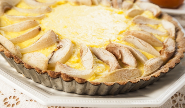След като се подготви тестото, се оставя да се охлажда в хладилника около 30 мин. Фурната се загрява предварително до 180 градуса. Маже се форма за пай 25 см, която се покрива с хартия за печене. Хар...