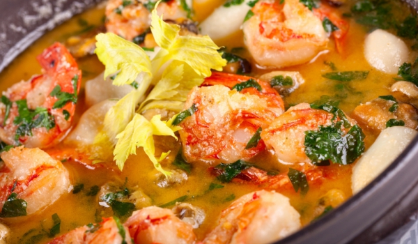 Наситнете кромида и чесъна и ги запържете в дълбок тиган. Добавете морските дарове, запържете за 3 минути и прибавете 3 ч.ч. вода и ориза. Оставете ориза да се свари за 20 минути на по-слаб огън. Овк...