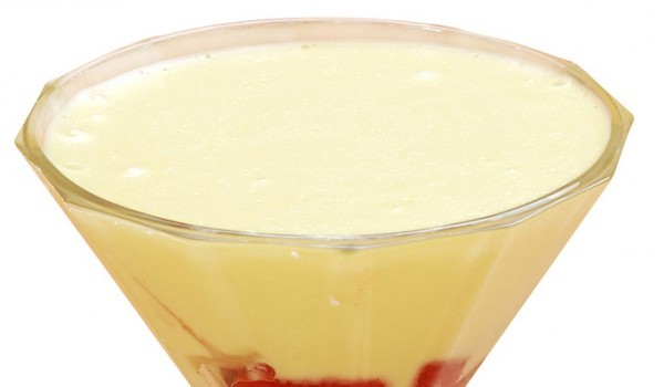 Пасирайте бананите на гъсто и гладко пюре. Разтворете желатина за 20 минути в малко вода. След това го разбийте в купа с киселото мляко и изварата, добавете и захар. Оставете тази смес да стегне в хл...