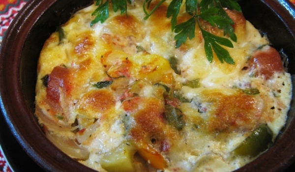 В 1 л. вряща вода се слагат солта, олиото и нарязаните лук и зеле. Картофите се измиват, обелват се и се нарязват. След като поомекне зелето, прибавят се картофите, а след малко нарязаните домати и ч...