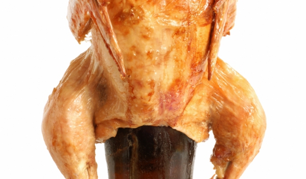 Почистете пилето и го натрийте вътре и вън със сол, червен пипер. Отворете бутилката бира и я набучете в пилето от трътката през гърлото и я поставете така изправена в тава във фурната. В гърлото на...