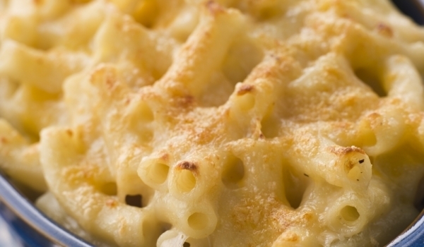 Сварете макароните в подсолена вода. Отцедете ги и ги разбъркайте с маслото и настъргания кашкавал. Запържете в мазнина 2 с.л. брашно с 2 с.л. масло и ги разредете с прясното мляко. Оставете соса да п...