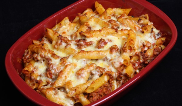 Сварете макароните според указанията на опаковката. Докато макароните се варят, смесете останалите продукти (с изключение на кашкавала) в голяма тенджера и варете докато лука се свари. След като мак...
