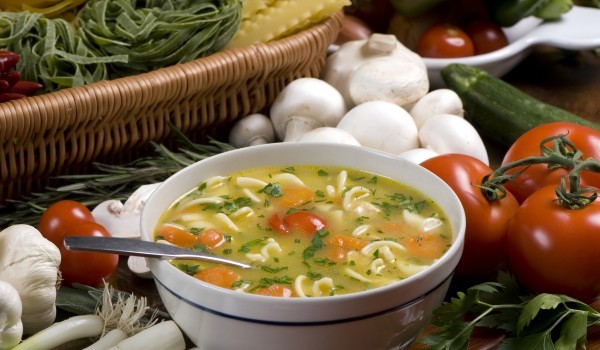 Сваряваме макароните в подсолена вода. Изплакваме ги със студена вода и ги настъргваме на едро ренде. Сваряваме граха, морковите и картофите и ги пасираме. Доматите нарязваме на ситно. Приготвяме бя...