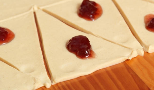 Разтворете първо маята в леко топлото мляко с щипка захар. След като се активизира, добавете останалите продукти и замесете гладко тесто. Оставете го на топло място да втаса. След това от тестото раз...