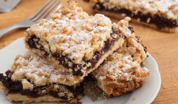 Загрейте фурната на 200 градуса. Сипете маслото и брашното в купа и разбийте до получаването на трохи. Сипете пудрата захарта и водата, разбийте до получаването на гладко тесто. Разточете тестото до п...