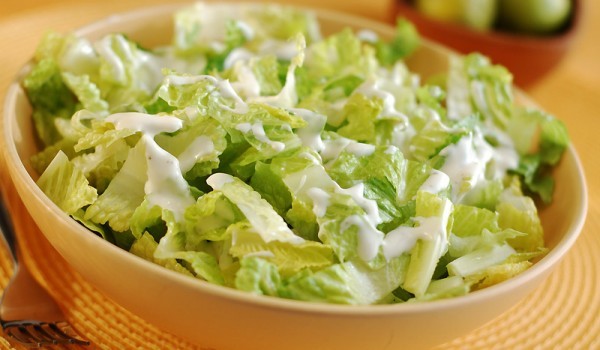 Измийте добре марулите и ги нарежете на тънки ивички. Добавете ситно нарязания чесън, мазнината и посолете. Разбъркайте добре и прибавете киселото мляко, нарязаните домати и репички.