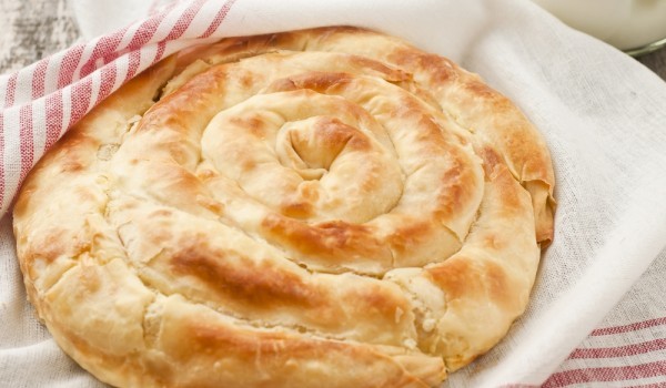 Размийте маята във водата. Направете кладенче в пресятото брашно сипете маята, разтворената в оцета сода, киселото мляко, солта и маслото. Замесете хомогенно тесто и го разделете на 5 топки. Покрийте...