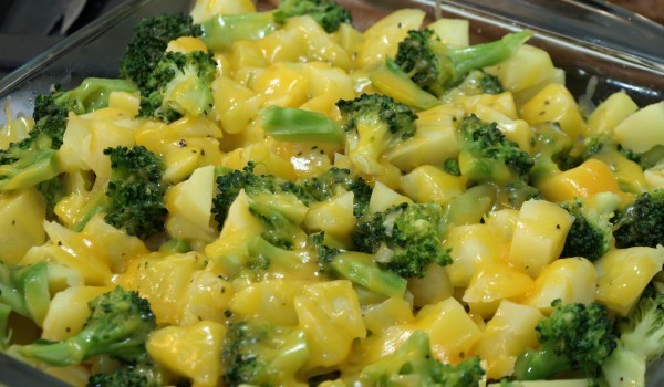 Сварете картофите в подсолена вода, но без да ги преварявате, а да останат полусварени. Охладете ги и ги обелете, като ги нарежете на кубчета. Розичките броколи бланширайте в кипяща подсолена вода и...