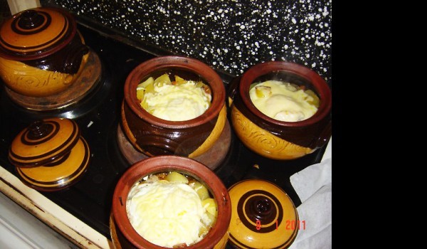 На дъното на гювечето поставяте малко масло, и започвате да редите гювечето, най-отдолу слагате кромида, след това свинското месо - което трябва да е нарязано на хапки, след това суджука - нарязан на...