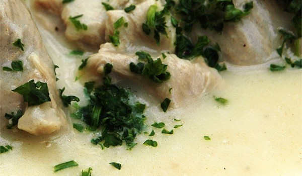 Нарежете пилешкото филе на много ситно и го запържете за кратко в сгорещеното масло. Когато придобие златист цвят добавете и сметаната и разбъркайте, така че да се разтвори брашното равномерно. Добаве...