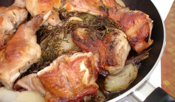 За това готвене ще имате нужда от голям, дълбок тиган с дръжка, в който да можете да поберете пилето. Запържете леко пилешките парчета - да покафевеят, на не много силен котлон. Постовете ги в тава....