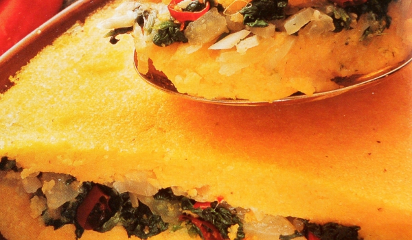 Фурната се загрява предварително до 180 градуса. Намазва се форма за печене с масло. Зеленчуците се бланшират в подсолена, вряща вода за 1 мин. Чесънът и лютата чушка се запържват в 2 с.л. от зехтина...