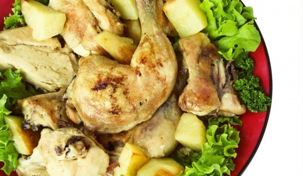 Вземете охладената пилешка кожа и я нарежете на средно големи парчета. Накиснете ги в марината от лимоновия сок, зехтина, виното, горчицата, сол, черен и червен пипер за около 1 час. След това ги отце...