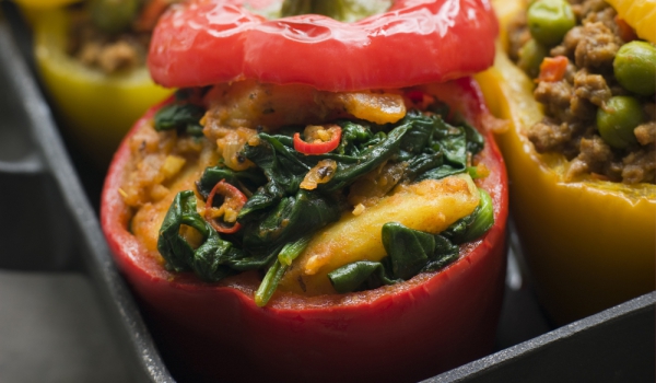 Почистете чушките от семената и дръжките, като ги измиете преди това. Посолете ги отвътре. В 2/3 от олиото задушете нарязания на филийки лук, след което добавете 1-2 ситно нарязани домата. Добавете и...