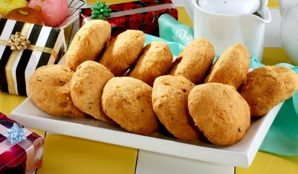 Лимонът и портокалът се изцеждат. Маслото се смесва с половин чаша пудра захар, сока от половин лимон, яйцата, брашното, бакпулвера, бадемите и канелата. Тестото се разбърква добре и се излива в тави...