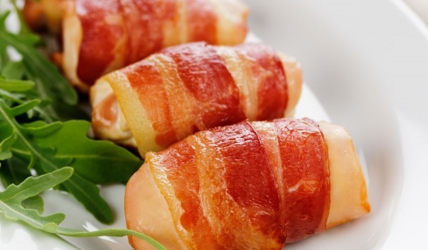 Срежете джобче във всяко филе и вътре сложете пушеното сирене. Подправете със сол и черен пипер на вкус. Увийте всяко филенце с два резена бекон, подпъхнете под бекона листенца босилек. Закрепете с...