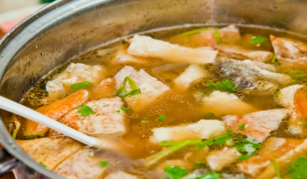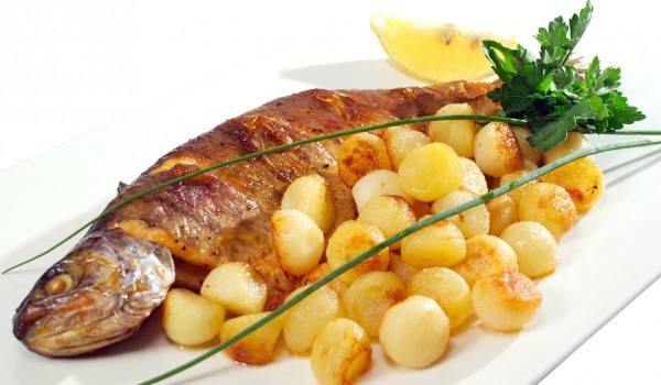 Сварява се бульон от водата и пуешкото месо. Прецежда се. В същия бульон се сварява дребната риба, предварително изчистена. Прецежда се. Пъстървата се нарязва на едри парчета, сварява се в бульона до...