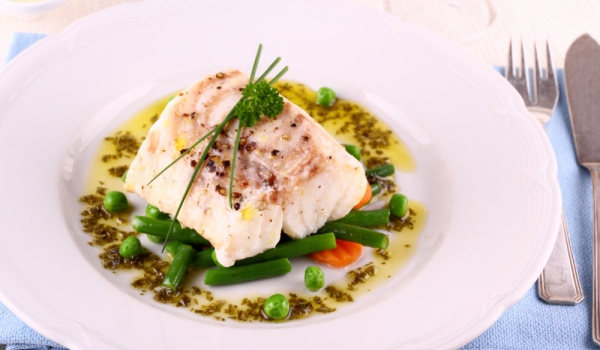 Рибата се почиства, разрязва се на две, обезкостява се и се маха кожата. Рибата се нарязва на парченца, всяко парче се топва в олио, нарежда се в тавичка, полива се с лимонов сок и се оставя за 15 мин...