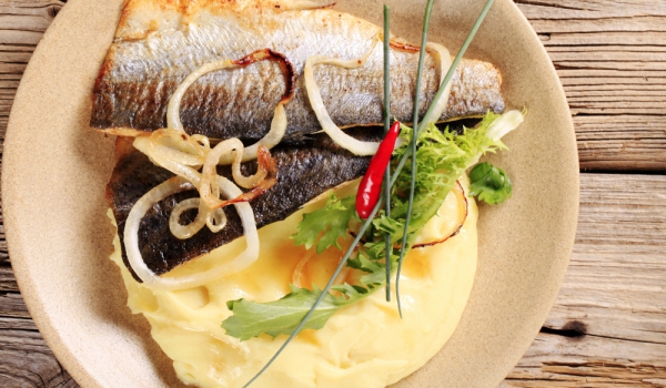 Почистете рибата и я овкусете със сол и черен пипер. Оваляйте я в брашното и я изпържете в силно сгорещеното олио. Поръсете изпържените рибки със ситно нарязан магданоз. Сервирайте със задушените в...