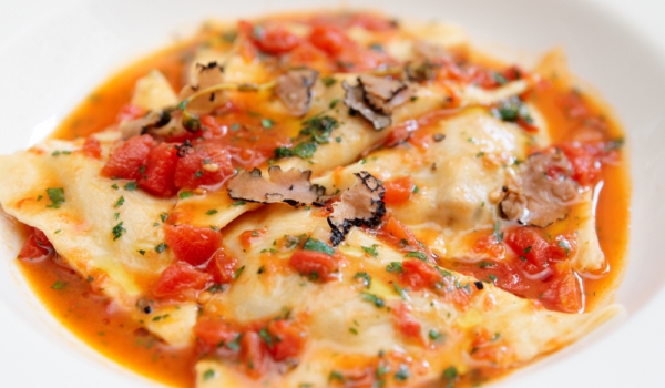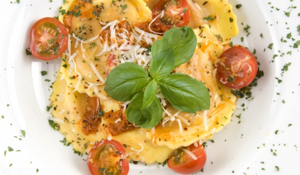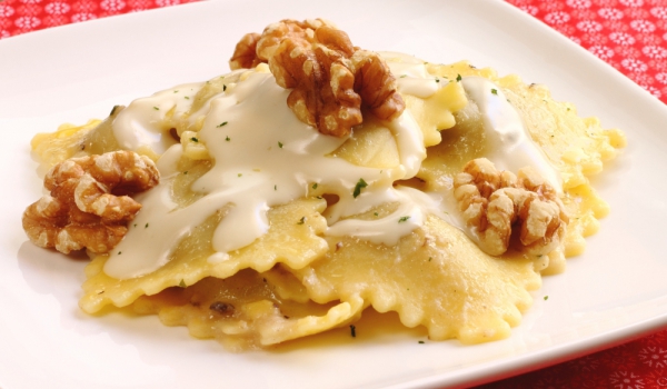 Равиоли на фурна с чеснов сос и моцарела
