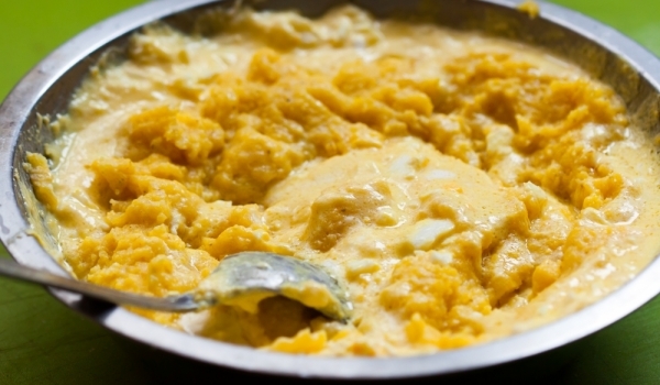 Брашното се пресява. В дълбока тенджера се налива водата и млякото, добавя се солта и четири супени лъжици брашно. Щом кипне, се добавя цялото брашно и се разделя в средата на две. Вари се на слаб ог...