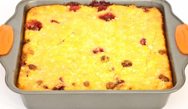 Фурната се загрява предварително до 170 градуса. Кръгла форма за печене се маже с масло (24 см). Брашното се пресява с бакпулвера и солта. Маслото и захарта се разбиват до получаването на крем. Добав...
