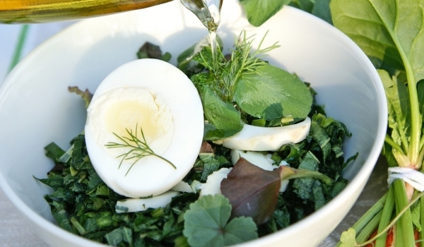 Почистете добре лапада и киселеца, нарежете ги или ги накъсайте. Накълцайте зеления лук, чесъна и магданоза. Сложете ги в голяма купа и ги намачкайте лекичко със сол. Добавете лапада и киселеца, какт...