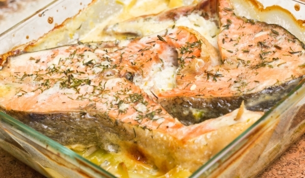 Почистете предварително сварената сьомга от костите и кожата. Нарежете на порционни парчета и ги овъргаляйте в разтопено масло и галета. Към рибата с галета добавете предварително разбитите яйца и оце...