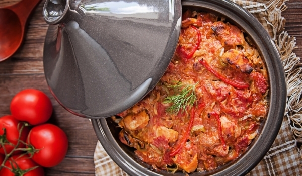 Нахутът и лещата се кипват във водата. Добавят се нарязаните месо и лук, настърганите домати, джинджифилът, шафранът, накълцаният магданоз, солта и черният пипер. Вари се до готовност на месото и се...