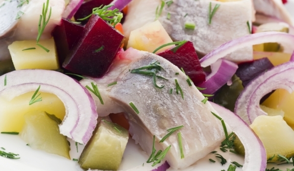 Различните риби се нарязват на малки парченца и се смесват с лука. Сместа се полива с лимонов сок и се добавя към нарязаните сварени картофи. По желание се овкусява с сгорещен зехтин, сол, черен пип...