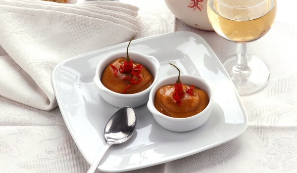 Добре почистените домати се смилат и се кипват. Варят се на тих огън до сгъстяване. Отстраняват се дръжките на чушките, а самите чушки се нарязват на парчета. Продуктите за маринатата (без магданоза...