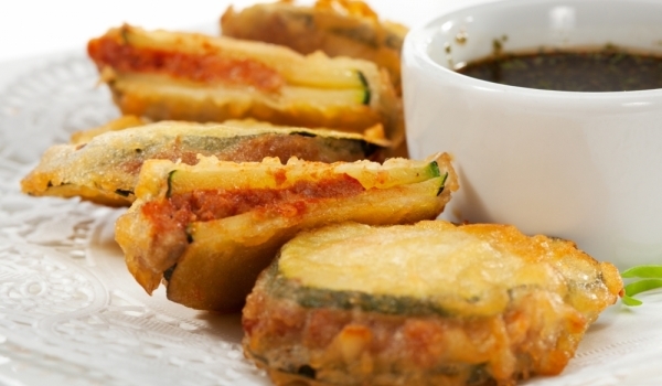 Внимателно нарежете тиквичките на дължина на филии или на кръгчета с дебелина около 1 см. Леко ги осолете и ги оставете около 10 минути да се отцедят. Загрейте мазнината и изпържете тиквичките. Изваде...