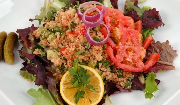 Изпържете скълцания лук в мазнината и добавете булгура. Оставете да се готви за 10 минути, като бъркате от време на време. Добавете доматите, нарязани на кубчета, долейте бульона и овкусете със сол и...