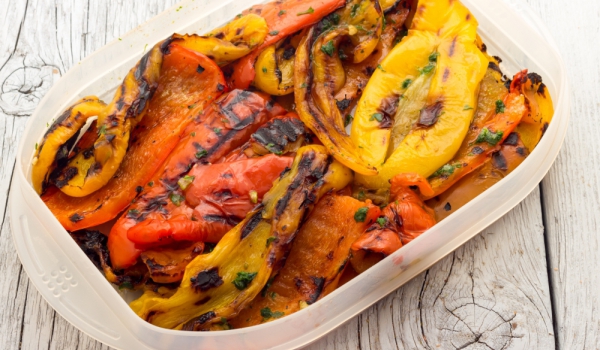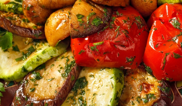 Патладжаните се режат на дебели филии (5 мм), осоляват се и се оставят в гевгрир да се отцеждат за около час. Тиквичките и лукът се режат на кръгчета. Червената цикория се разделя на сегменти. Чушкит...