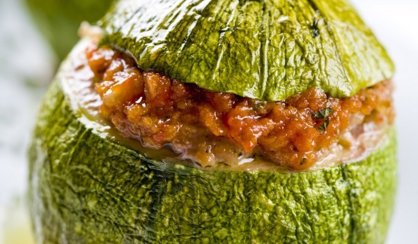 Фурната се загрява предварително до 180 градуса. Тава за печене се маже с масло. Тиквичките и лукът се бланшират за 5 мин. в подсолена и вряща вода, след което се изцеждат и се изгребва вътрешността н...