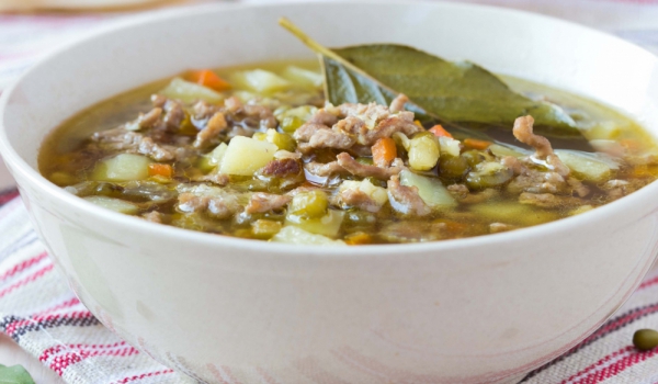 Бульонът и телешката кайма се слагат в голяма тенджера. Прибавят се доматите, морковите, целината, тиквичката, подправките, яйцата. След като заври, се разбърква от време на време. Оставя се да къкр...