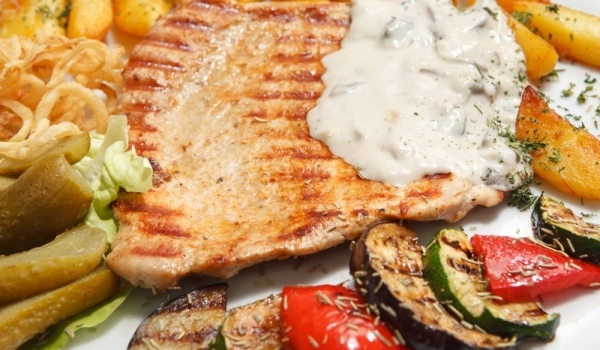 Пържолите се начукват и се пекат на скара до готовност. От яйцата, млякото, брашното, солта и захарта се забърква тесто и всяка пържола се потапя в него и се запържва в олиото. Сервират се, поляти с...